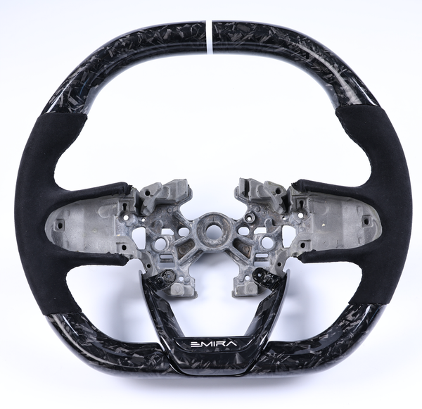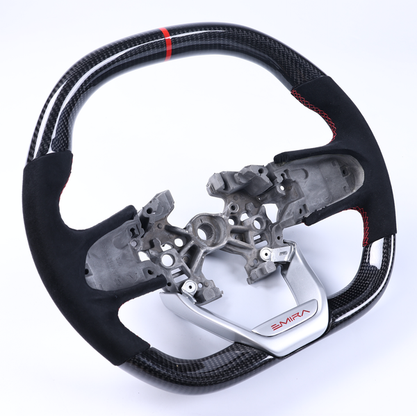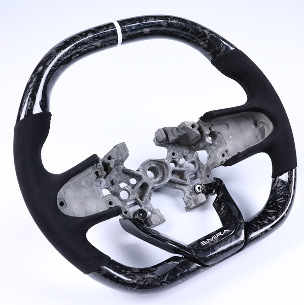 Choose from three different leather choices, Glossy or Matte Twill carbon fiber or also forged carbon fiber, color of carbon, center stripe and color, and stitching colors for a truly one of a kind wheel.