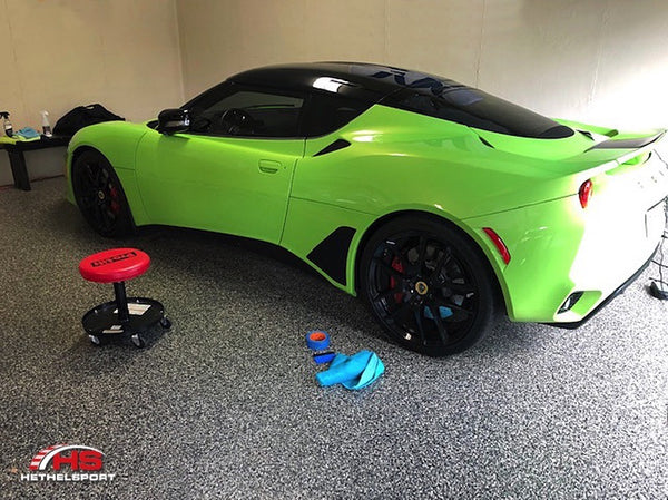 Protect your Evora’s paint from road debris and track rubber while looking racy.