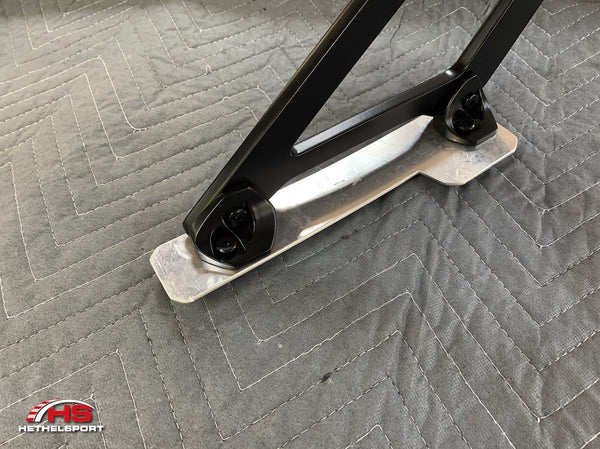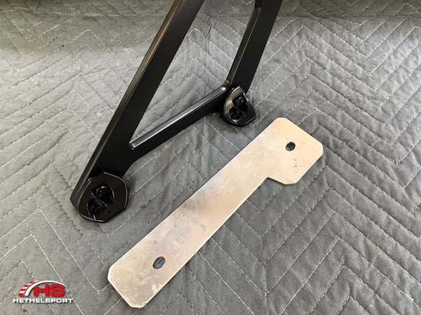 Every 430 wing is individually hand-crafted to match the OEM level of fit and finish in glossy “pre-preg” dry carbon fiber construction (lighter and stronger than our previous carbon construction). Wing pedestals & mounts are alloy and include an alloy spreader plate to be mounted underneath the tailgate.