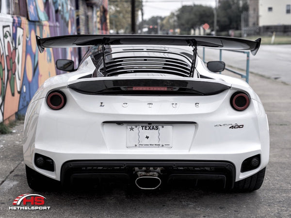 Our 430 Rear Wing was inspired by the ridiculously quick 2018 Evora GT430. It was originally designed for our 410 Engine Cover-Tailgate however it has also been successfully fitted to a factory Lotus louvered tailgate as well as well as the non-louvered (glass) tailgate found on the 400/410/GT.