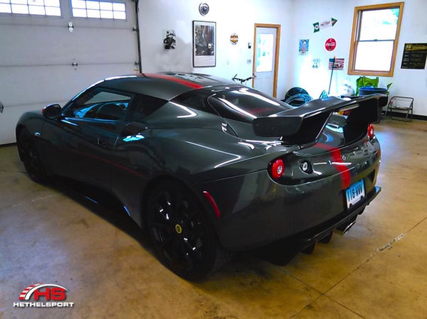 In 2010, a factory-team won the GT4 European Cup Nürburgring race, and the car was a Lotus Evora GT4. Relive the thrill with our GT4 Rear Wing inspired by the same car! Made exclusively for all 2010~2014 U.S. Evora & Evora S cars, this aerodynamic aide replaces the original wing. Installation utilizes the original wing’s mounting points.