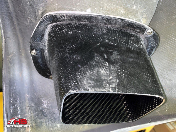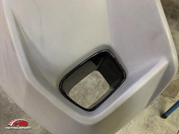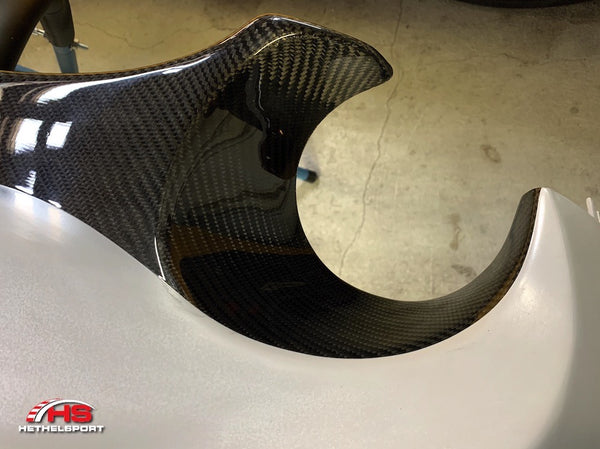 As with all composite fiberglass pieces, prep & pre-finish work may be needed prior to final painting. Exposed carbon fiber finishes are clear coated with UV protection however due to the nature of composite production, carbon fiber finishes may have minor imperfections.